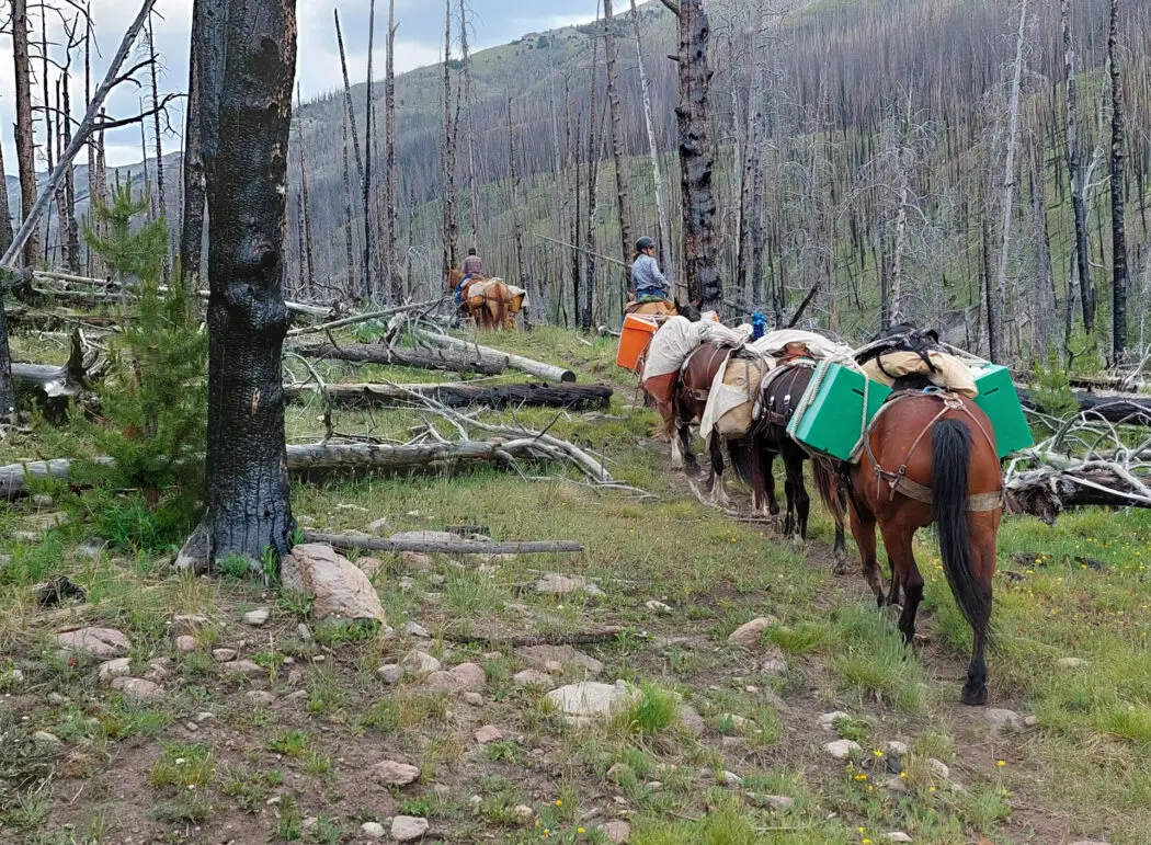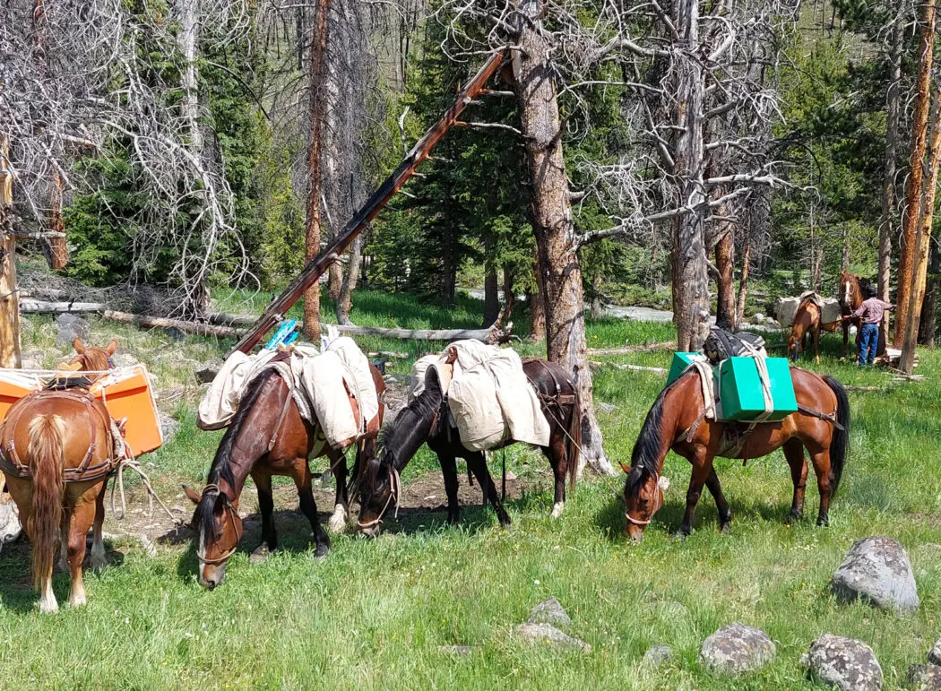 When you arrive at the ranch you will be greeted by your guides and meet your mounts. You are welcome to come to the ranch for breakfast, which is served 7:30 – 9:00. We ask that you be at the ranch by 9:30 am, so that we can get your items packed before the 10:30 am departure. Keep in mind that all of your gear will be carried by pack horses up the mountain, so it will need to be packed in stuff sacks that can be easily loaded (rolling suitcases don’t pack well). Sacks can be provided for you if you do not have your own.