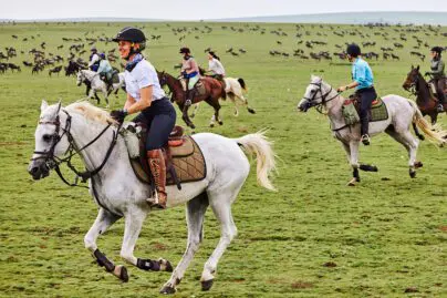 Vehicles are noisy and they usually have to stay on roads so that they can’t reach some of the most secluded places. If you are walking, you have to watch where you are putting your feet, but in the saddle you can look around all the time. On horseback it can be thrilling to gallop along with fast moving herds of giraffe, wildebeest or zebra and you share the experience with your equine companion. On horseback one can also have unusual experiences like discovering an ostrich nest far off the usual tourist path in places like Kenya’s Masai Mara. Or on the Kilimanjaro Ride in Tanzania you can often watch herds of elephant while sitting quietly on your horse.