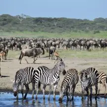 - Zebra and wildebeest travel together