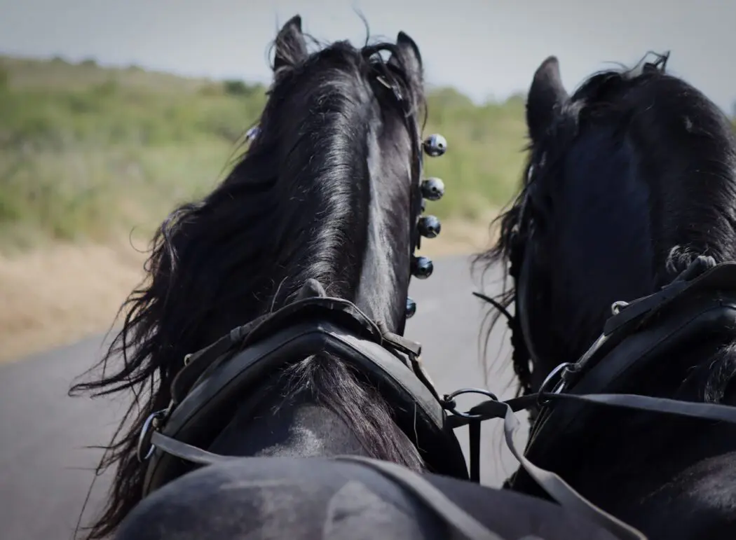 If you want to take a break from riding, you can experience a fun carriage ride into the countryside, drawn by two beautiful black Friesians.