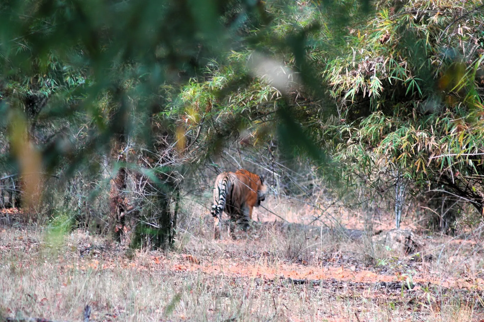 Mammal species in Pench National Park include the Royal Bengal tiger, leopard, golden jackal, dhole (Wild dog), sloth bear, chital, sambar, northern red muntjac, four-horned antelope, gaur(Indian Bison), nilgai antelope, chinkara gazelle, wild boar, Common langur, Rhesus monkey, Indian hare and Indian porcupine. The bird life includes about 285 species of resident and migratory birds.
