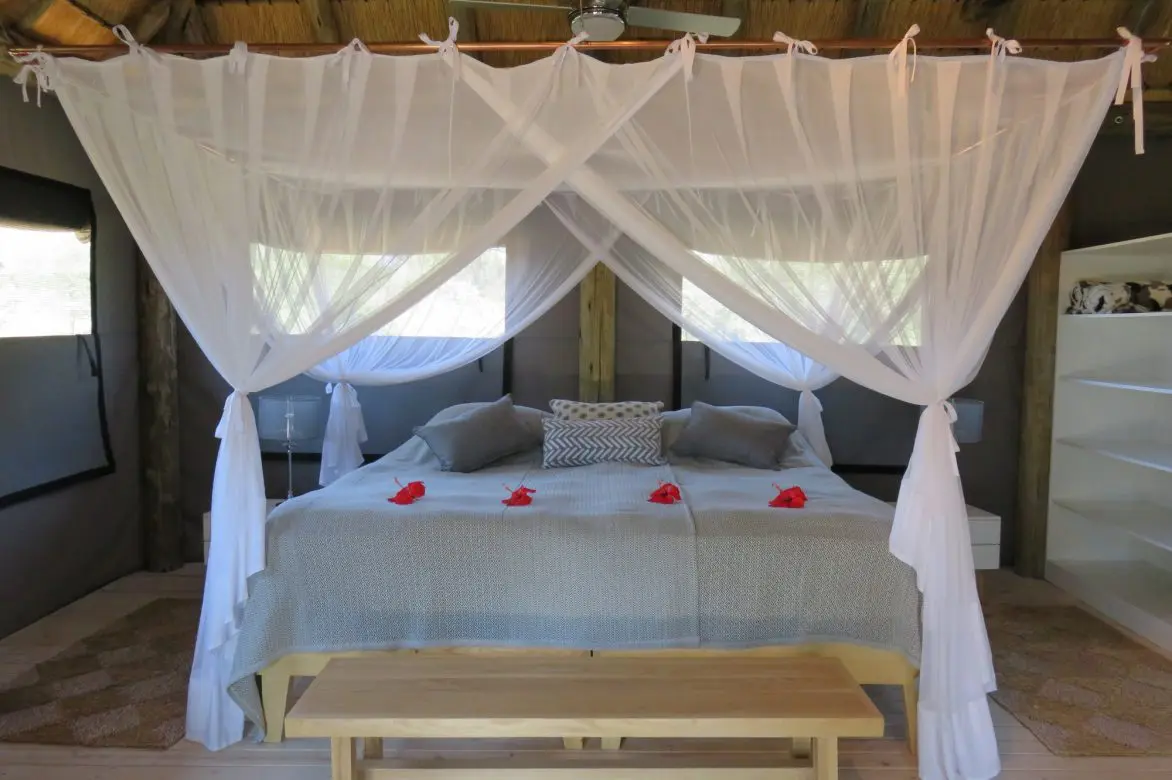 The first night, with all its fantastic sounds and noises, is probably the most exciting one. Accommodation for these first three nights is in old style safari tents with en-suite bathrooms, mounted on platforms above the Makhutswe River at the main camp.