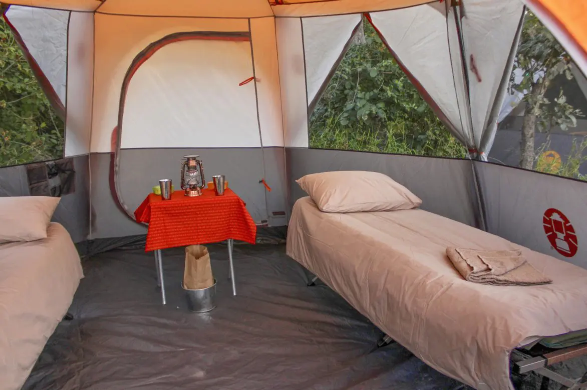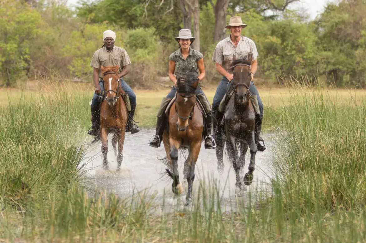 Return to camp for lunch and siesta in the dense shade of the giant jackalberry or leadwood trees. A meditative evening ride is spent listening to the sounds of the bush and the snorting and splashing of the horses, before returning to camp for dinner under the stars.