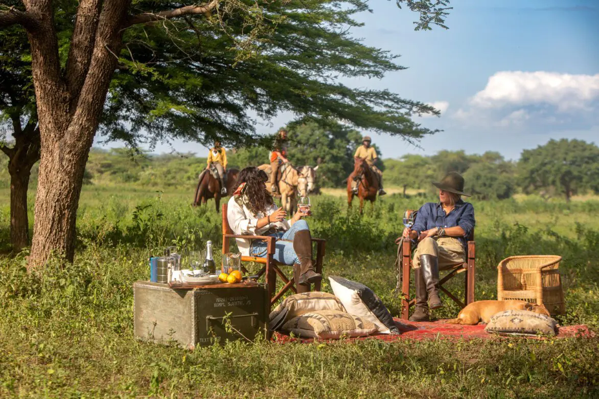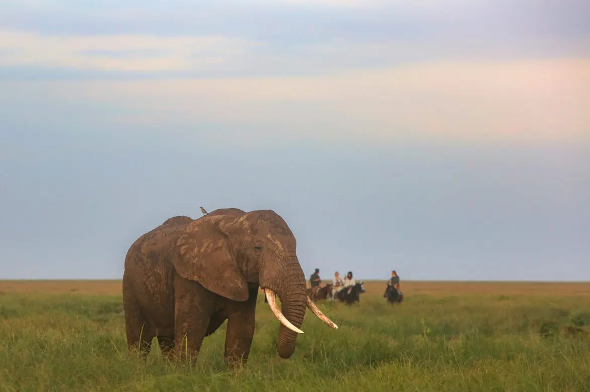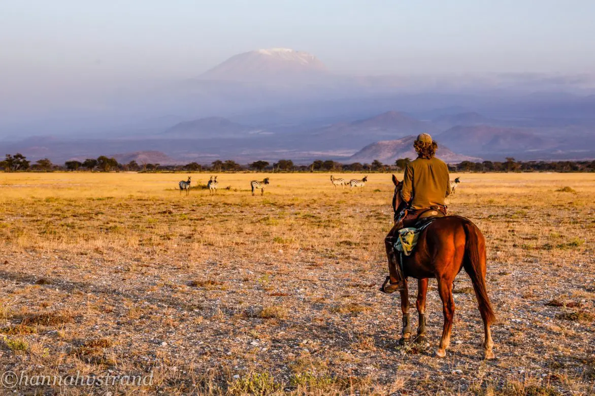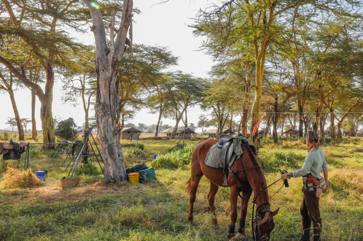 The feeling is magical as you enter into the big canopy forests. Lunch will be set on route, with time for a small siesta. After lunch the ride continues through leopard country and as you head towards the night stop, you will pass by Margarete Trappe’s old house. The legendary lady known and remembered as the Iron lady from the first world war. “If, as children, we were thrilled by Buffalo Bill we should have been still more spellbound by Mrs. Trappe’s adventures, the adventures of the fearless woman with her two legendary horses, Comet and Diamond, and her two inseparable Alsatians. Like a phantom she would suddenly appear, like a phantom she would vanish; as intimate with wild beasts as though they were tame.” These are some of the tales about Margarete whose old riding paths this horse safari follows through the holy forests of the park. Arrive at camp, based on the foot of Mt Meru in time for showers and sundowners then dinner under the stars.