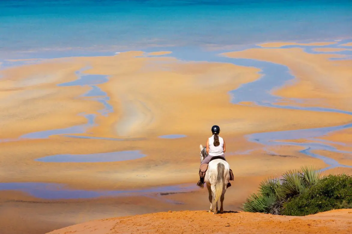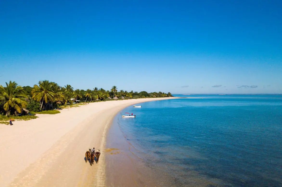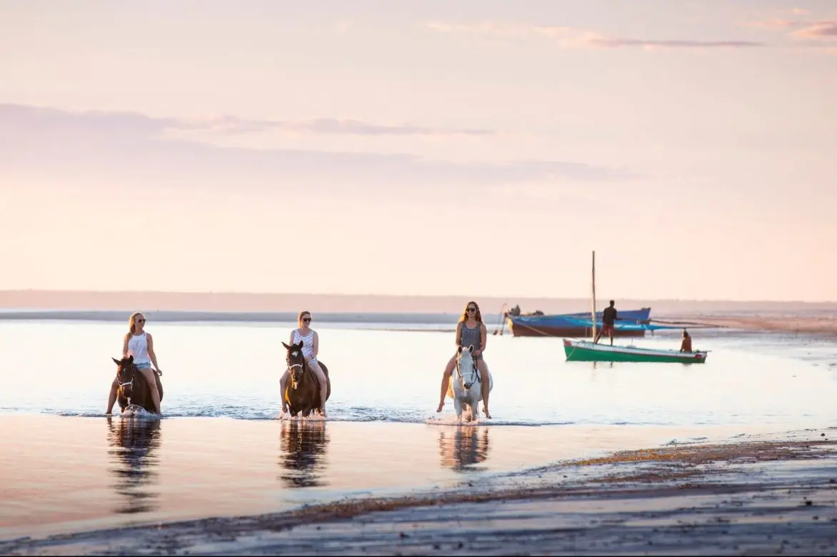 Have a relaxing morning before the lunchtime ride to a local fishing village. From the stables Mandy guides the group down to the beach at a gentle walk, the tide is out and the blue and white colors shimmer into the distance. Past the rocks the beach opens up and under Mandy’s instruction you will canter towards mangrove trees in the distance and up a red bank to the “Finger Print of God.” The panoramic views look out over the Bazaruto Archipelago, you will see colorful dhows glide along the channels and fisherwoman hunting crab in shallow sands. You continue through winding coconut plantations along a beach path to the Managlise Fishing Village.
