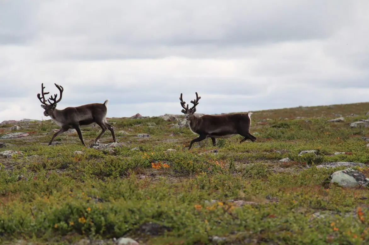The Sami are the indigenous people of the area, whose culture revolves around reindeer. A Sami community is an economical and administrative community that cares for the reindeer in the area. There are about fifty Sami communities in Sweden and the reindeer herding area covers around half of the area of Sweden. Just a small part of the Sami population are members of a Sami community. Leaváš and Girjas are Sami communities in the mountain area. Here in the west close to the Norwegian border is where the reindeer normally are in the summer and in the lower mountains during autumn and spring. In winter time they are more east in the forest land.