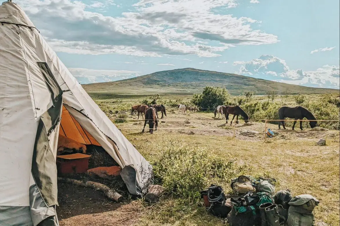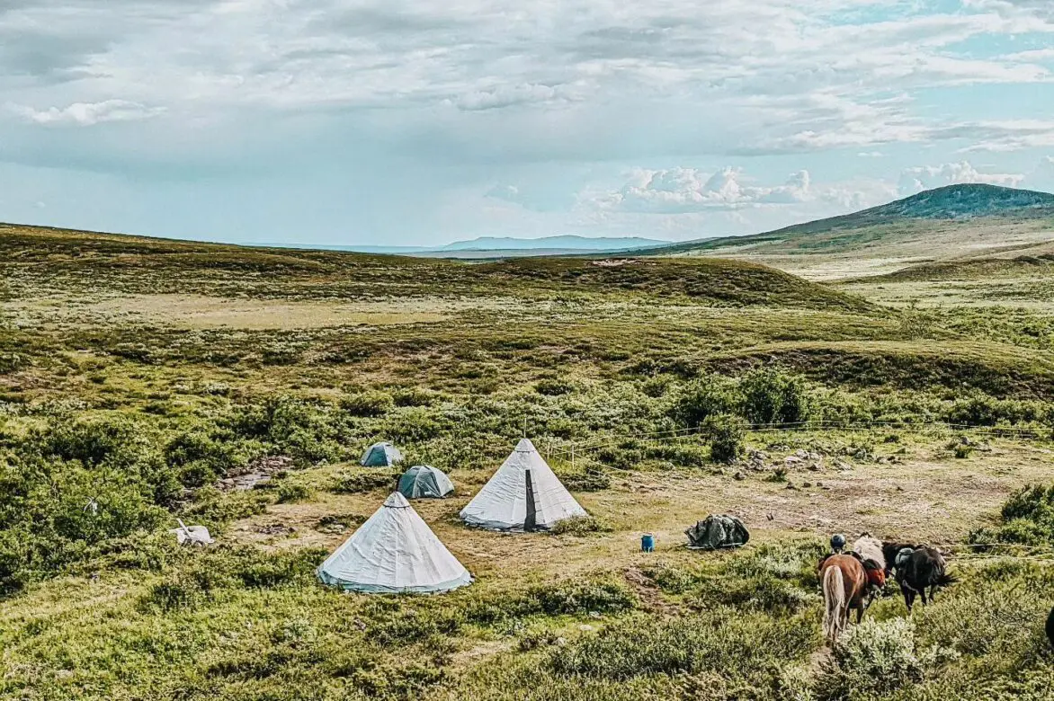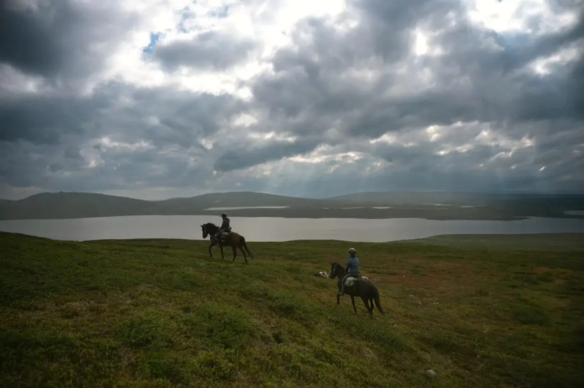 The next morning you’ll pack your things and ride over the bare mountain and down to the small Sami settlement called Ratekjokk, where you will stay for two nights in a cabin. The owners of the tour company have their roots in Ratekjokk so this place is really “home.” They have a few houses there, a sauna right by a small river and the horses have lots of pasture there