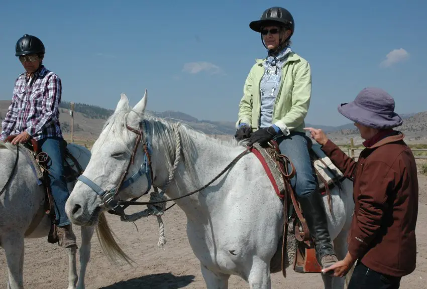 Sue is a Level IV Centered Riding Instructor who studied under Sally Swift. She teaches riding full time with students including world class endurance riders. She is also a Connected Riding associate instructor and for 20 years has been a student of the Alexander technique. Under her tutelage in this centered riding clinic you will acquire tools to release unnecessary tension patterns, rebalance your body, and increase confidence in both horse and rider, making training easier. This will increase your communication with the horse, as well as allow the horse to move more comfortably and fluidly. The clinic week provides a nice balance of instruction and relaxing trail riding. Centered Riding® is an innovative way of expressing the classical principles of riding, using body awareness, centering and imagery. Centered Riding encompasses all seats and styles of riding. It teaches a language that allows clearer communication between horse and rider.Centered Riding® is based on a knowledge of human and horse anatomy, balance, movement, and on understanding how the mind affects the body and how both affect the horse. It uses centering and grounding techniques from the martial arts, along with body awareness, mental imagery and sports psychology. Rider and horse begin to move more comfortably and athletically. As you learn and experience the principles of the work, you and your horse will achieve greater harmony.
