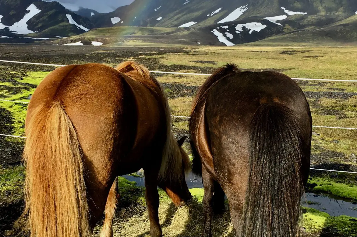 After breakfast each rider chooses one horse for a leisure ride in the Thorsmork reserve. Enjoy the scenic place with glacier views, astonishing mountains, bright green moss, bushes and creeks everywhere. Afterwards take your time to say goodbye to the horses and fellow riders. The transfer from Thorsmork to Reykjavik leaves 4PM or continue your adventure in Thorsmork on your own. The area is also a beautiful hiking area and there is the option of hiking between two glaciers, Eyjafjallajökull and Mýrdalsjökull. Its an amazing hike but a difficult one as it takes about 12 hours.