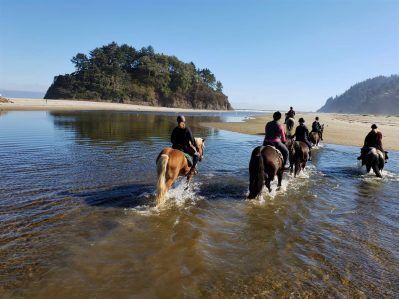 After staying at and riding on the beach the trip returns to the horses’ and hosts’ home of Carlton. This is the heart of wine country, with tasting rooms available all along the charming downtown main street. The final day of horseback riding in Oregon takes place on the grounds of a beautiful vineyard with a spectacular view of the Willamette Valley.