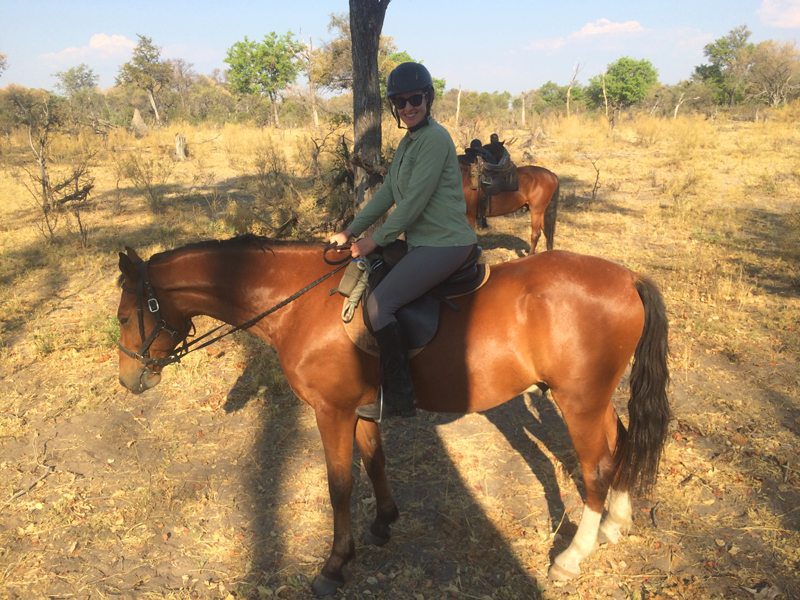 The outfitter also uses Thoroughbreds, Arabians, Friesian crosses, Clydesdale crosses and local African breeds. The tack is of wonderful quality, and never have I been so comfortable riding, as I was fully pampered with a seat saver and well-fitted equipment. Morning rides followed the trails of buffalo, giraffe, and of course, elephant, and although we were there when the delta was at its lowest point, we still crossed wet areas which are home to lechwe and reedbuck antelope. I know I was not the only member of our group to be giddy with childlike joy when we took these crossings at a canter, getting a cooling splash as our horses moved like they were flying.
