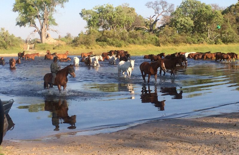 The horses have wonderful lives in the delta, grazing in the rich green grass and being carefully protected from predators. Many are home bred, most descending from an Saddlebred stallion who, although now retired, is still the herd leader. These “Botswana Warmbloods” are beautiful, with great size and temperaments.