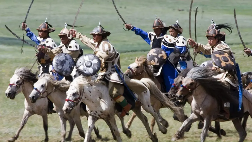Mongolian horses are short, not more than 14hh, with rather large, unrefined heads. They have not been sought for breeding, and through the centuries have remained pretty much undisturbed on the steppe, as the secret weapon of the Mongolians. These unassuming little horses are tough as wire, surefooted, have incredible stamina and are superbly adapted to the harsh Mongolian winters. They may never see the inside of a fenced enclosure, and will spend their lives unshod. Mounted on these remarkable horses, Ghengis Khan and his army of skilled archers — the Golden Hordes — were able to conquer much of Asia and eastern Europe, establishing the largest empire the world has ever seen. I was lucky to be in Mongolia this summer when the country was celebrating its 800th anniversary. One of the special events was a reenactment of Ghengis Khan’s cavalry demonstrating battle strategies: 500 mounted warriors thundering over the rise, dressed in leather armor and shouting the call to war. It is a heart-stopping sight. “