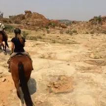 We spent a long morning game drive on a futile quest to find the few rhinoceros known to be in the area. We couldn’t find anything more than their tracks until the next day on horseback when we stumbled across a mother with her calf. Off Rodgers went again, on a merry chase trotting and cantering to get a glimpse of the great ungulates.