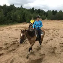 The riding from the cabin is through the park around the Gentilly river, through forested paths and across the river’s banks and dunes. The days are pretty fully spent in the saddle, with trotting and cantering throughout, so although you don’t need to be an expert rider, you should be prepared for long days with some faster paces. The horses are well-trained on the trail and take good care of their riders. Each morning you make your sandwich for lunch and stop along the way for a picnic meal. Breakfasts and dinners are impressive affairs, with dinner made on the farm and shuttled to the cabin. You have the opportunity to purchase drinks on the way to the cabin, an option which can be appreciated after a long day in the saddle, and enjoyed while Bernard serenades the group with his guitar in the evening.