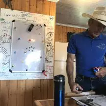Home base is Bernard’s farm, where you stay the first and last nights of your trip. The guest house has several bedrooms upstairs from the two shared bathrooms with showers, with lots of Western equestrian décor and artwork from the years the farm has operated.