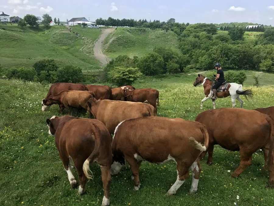 Your last night is spent back at the farm before your final day of riding, with an introduction to cattle work. This day will likely have several day riders to join for the experience, as you split and herd the cattle with your group from their pasture to another area of the farm. If you’re lucky, as we were, to have a rogue cow with her own agenda, this includes much gathering from wooded and low visibility areas before continuing to the designated route! After lunch, your task is to herd them back to the pasture, with time for a shower before departure that evening.