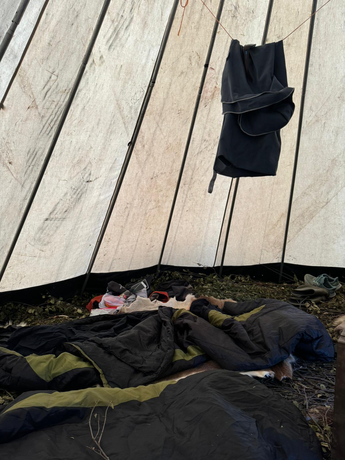 After our first ride we arrived at the teepees. I’m not a camping person, and I was a little startled to see – no pillows? The floor is covered in what- branches?? But my best sleeping nights were in the teepees – a mat and then a reindeer skin go on top of the brush, and it is springy, insulating and comfortable! We rode in late July, which meant daylight all night long. You could still enjoy the pleasant view from the latrine at 3am.