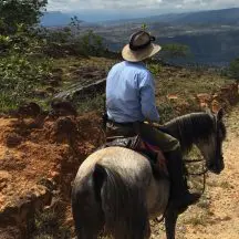 Upon pickup from the Bogota airport we were transferred to a ranch in the Valley Verde area, about 2 hours outside Bogota where we would spend the first two days of riding. From there we transferred to the town of Oiba for the first night of the Barichara ride. The only unfortunate situation was that the hotel was situated along a busy highway so rest was not easy to come by in the rooms of the hotel facing the highway. The next morning we received our safety briefing during breakfast before we set off on the fresh horses on our way to the town of Charala. The horses were quite excited to be starting the trail and all having been used for endurance were ready to go so you definitely have to be a confident rider. Up and down steep mountain trails we could appreciate the horses’ endless energy as they would be needing it for the weeks trail. We rode through lush vegetation along the hillsides and enjoyed vast views of the surrounding mountains. At our lunch stop a strong thunderstorm developed with a downpour. Fortunately we were able to wait out the worst of the storm while playing Teja, a game like horseshoes but with rocks which is played by the locals to pass time.