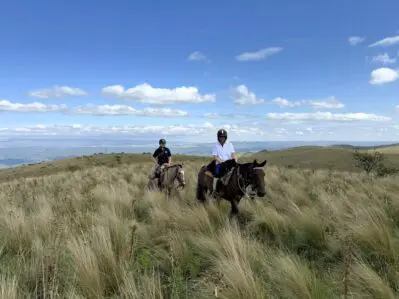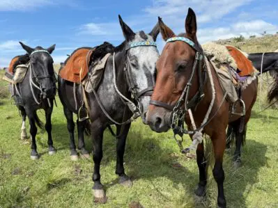 The Criollo horses are typically ridden in the mornings and the Peruvian Pasos in the afternoon. A quick way to tell the breed at a glance is that the Criollos have the traditional roached mane and forelock while the Pasos’ are free flowing. All horses are meticulously maintained and in good condition; a pleasure to ride. They are responsive and light, willing and brave and all get along well together. There were several guests who had never ridden before and were well taken care of by the guides and horses with no issue, and another group who enjoyed the opportunity for flat out gallops.