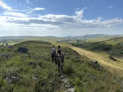 It was my first time riding a Paso and I was not disappointed. It was thrilling to experience the smooth floating gaits, and I felt as if I was magically and effortlessly being transported over the green rolling hills of the estancia. The saddles are of a comfortable trail style covered with sheepskins, and your horses are fully prepared for you.